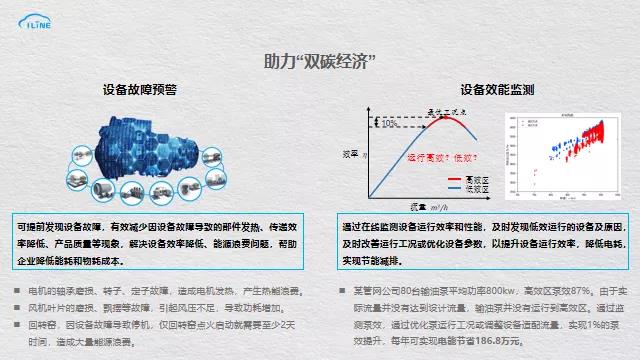 在碳达峰、碳中和国家战略目标驱动下,因联科技以设备智能运维为切入点,将节能降耗作为因联践行工业智能的重要应用方向之一,其核心体现在设备故障预警和设备效能分析上。